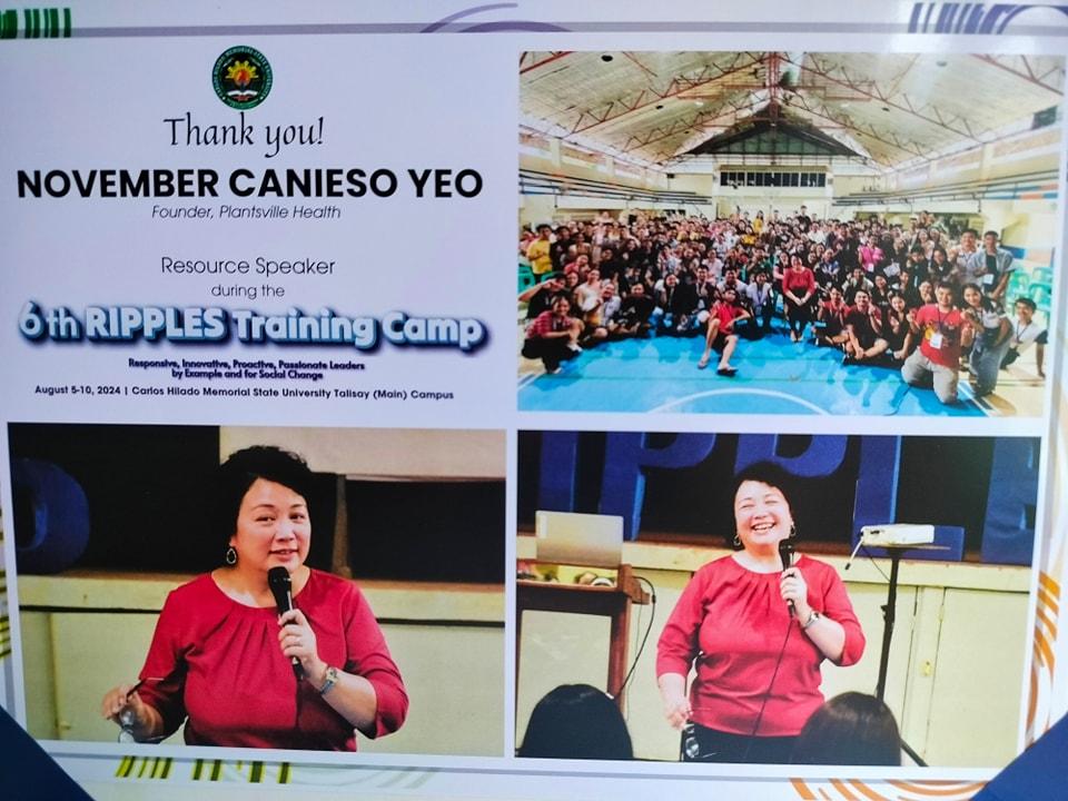 Engage your audience with an inspiring and informative 4-hour speaking session led by November Canieso-Yeo, founder of Plantsville Health Products, an award-winning social enterprise dedicated to conservation, sustainable livelihoods, health innovation, and climate resilience.